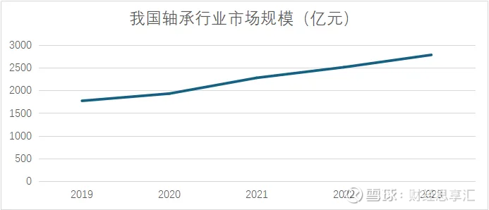据资料统计,2019年我国的轴承行业市场规模达到1770亿元,2023年则达到2785亿元,短短五年时间,行业整体规模实现57.34%的涨幅。