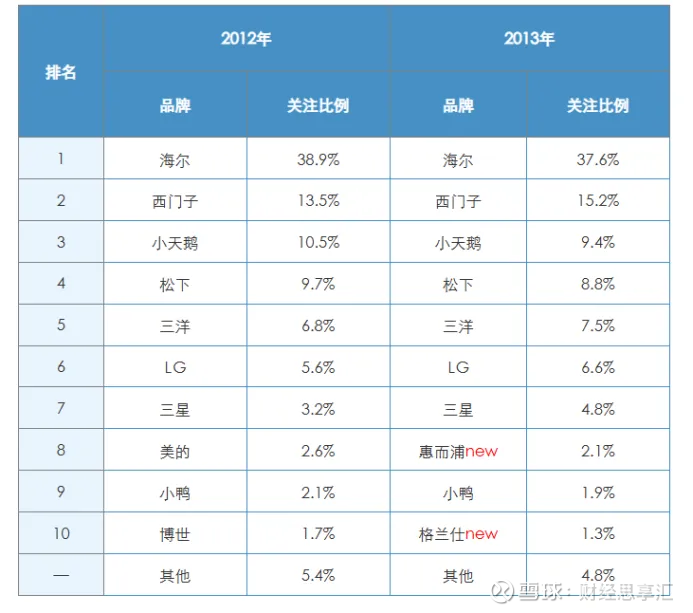 随着国产家电品牌的“价格优势”和“高端化”的成功,惠而浦也在消费者心中逐渐失去地位。国产家电逐渐成为消费者关注的重点,外资品牌逐步失去往日的优势。以2013年的研究数据为例,在洗衣机市场,惠而浦仅有2.1%的关注,而在微波炉市场惠而浦则更是几乎被消费者所遗忘。