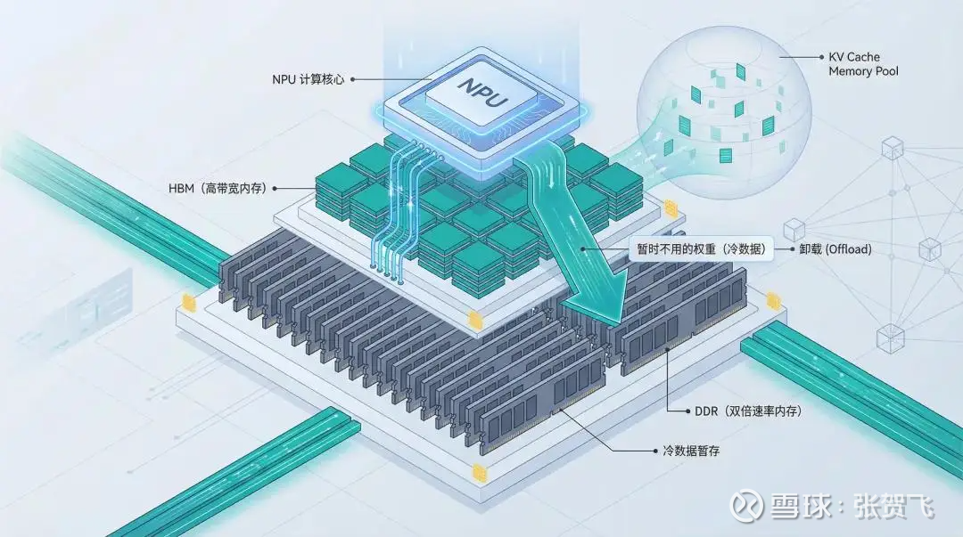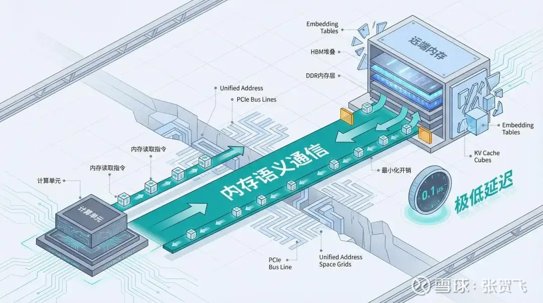 传统集群的KV Cache通常是绑定在单张卡的显存上的,如果用户问了一个超长的问题,节点A的显存被KV Cache撑爆了,附近的节点B即使显存空着,没有内存统一编址也无法借用,必须把任务重新调度、重新计算。