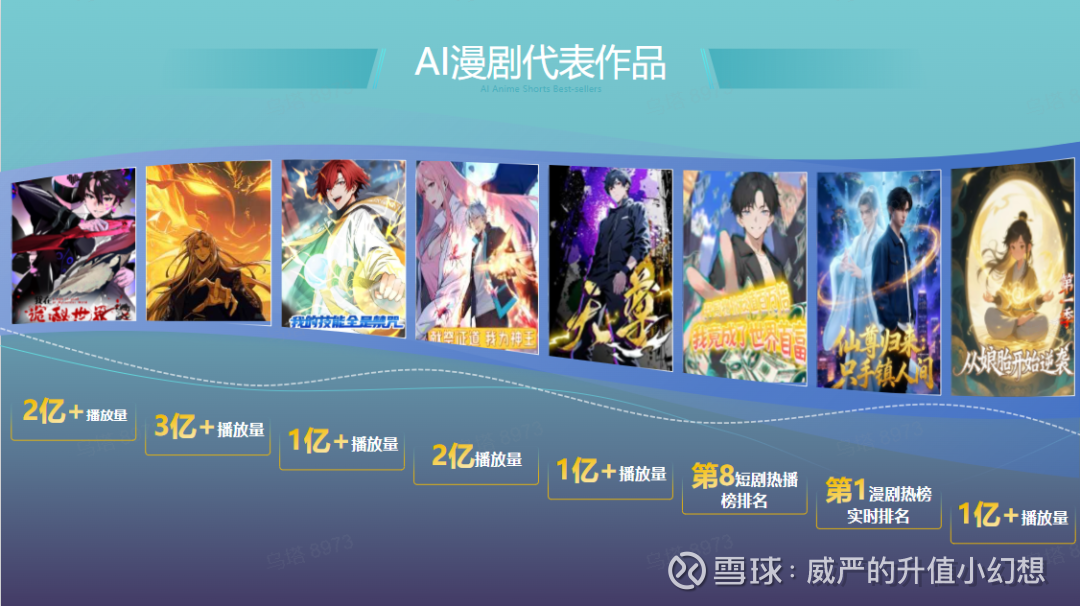 2024年,我们开始和抖音合作开展动漫短剧的业务。2024年年底,我们的作品《物价贬值》登上短剧总榜第八位,这个时候行业里面的伙伴们逐渐意识到动漫短剧赛道有可能诞生一个新的机会。10月份我们也有一部作品登上动漫榜第一名,在这个期间里面也有很多的作品陆陆续续上榜。包括《诡秘世界》《遇强则强》《献祭证道》等等一些优秀的作品。