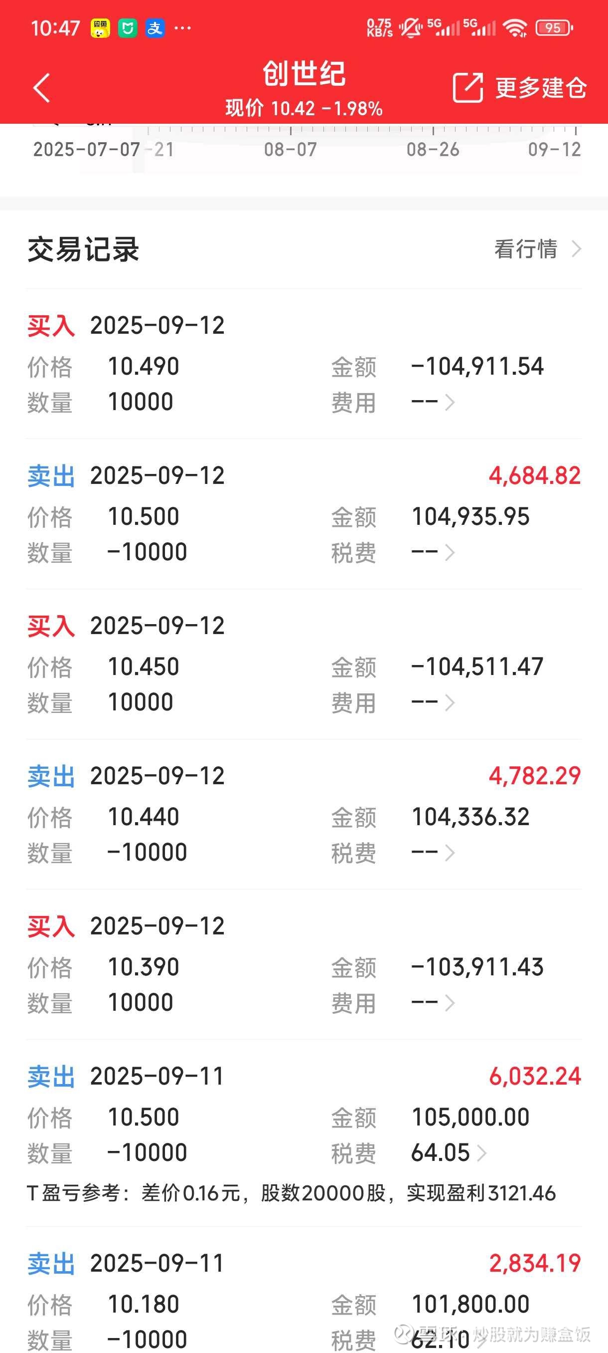 两个5分T成功,然后10.49套牢一份。昨天卖丢的,今天没捡回来。