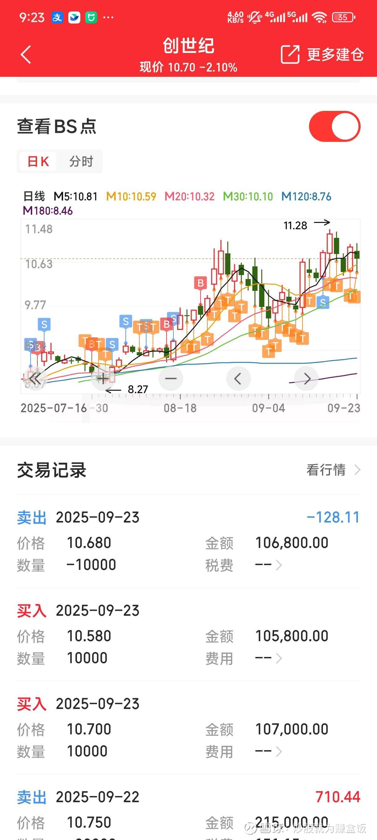 10.58进,10.68出,做了个1毛T,然后挂了一份10.7的,明天继续卖。