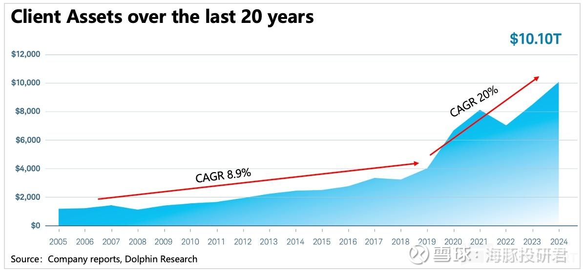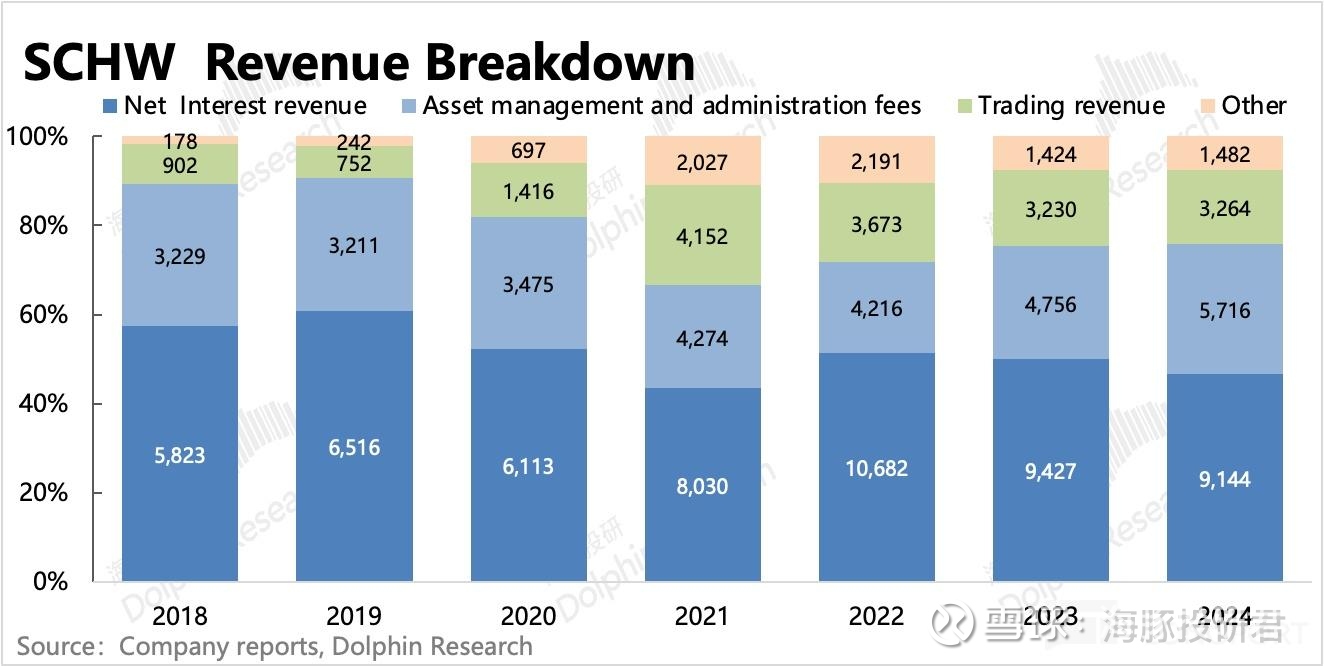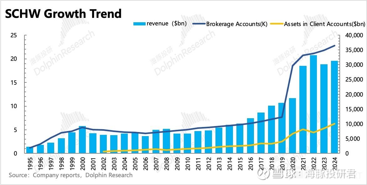 海豚君认为,及时转型财富管理是嘉信能够跨越多代券商变革,仍然屹立不倒并持续向上攀爬的关键一步。