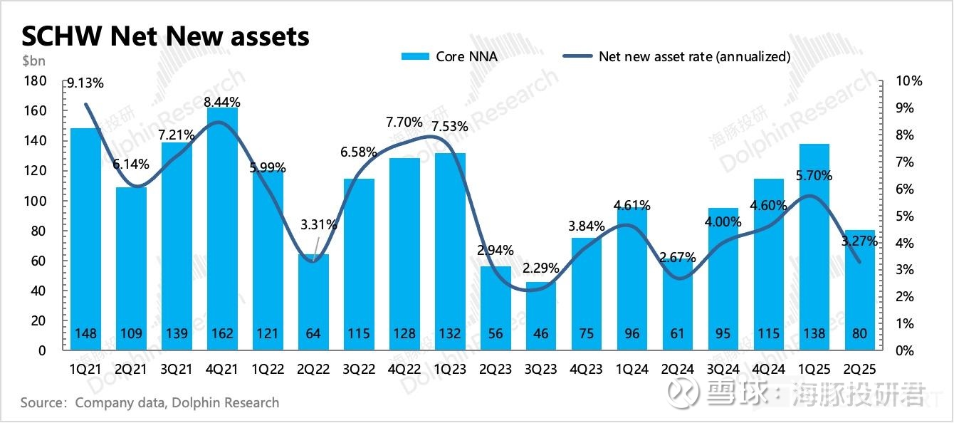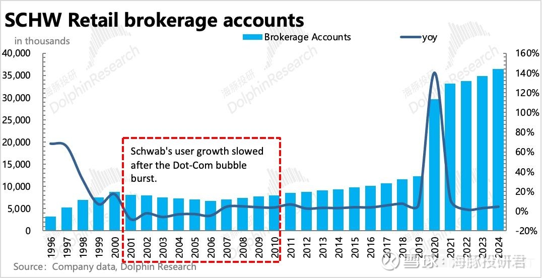 因此未来的降息周期,对嘉信可能并不是完全的利空。在老业务有增长压力下,可能因此激发“老年嘉信”创新变革的新动力,顺势迈入新的成长阶段。具体如何看待?海豚君会在下一篇中展开讨论。