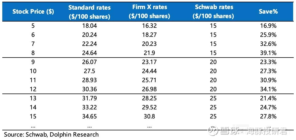 嘉信的起家源于固定佣金制(非市场化,全行业一样,主要基于交易额的固定费率+基于交易股数的固定金额+最低佣金额)的瓦解。市场供需竞争下,固定佣金也与当时的行业中“低门槛的大众投资”发展趋势相悖。