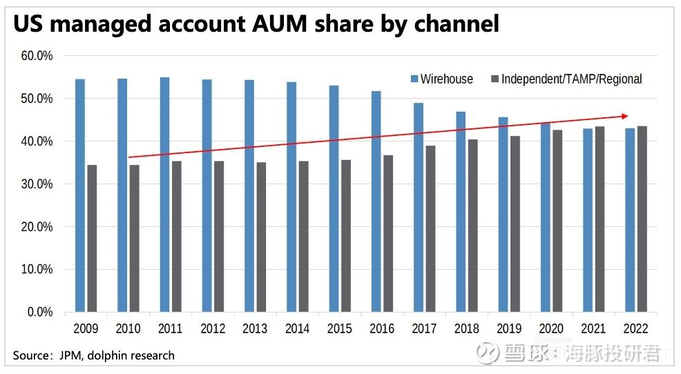 2)供给方面:产品供给(共同基金、ETFs)和服务供给(独立投资顾问)兴起