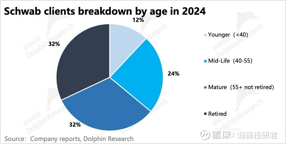 但随着互联网券商标杆——E*Trade、TD Ameritrade分别被大摩、嘉信收购,而人群总量不占优势的千禧族财富规模还在起步阶段,嘉信主导下的婴儿潮、X世代大众金融平台,至今依然保持着霸主地位。