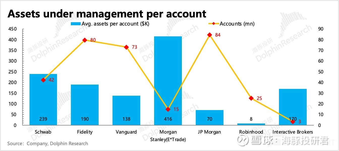 (2)传统投行里面,有银行业务优势的小摩总账户数非常高,有8400万;