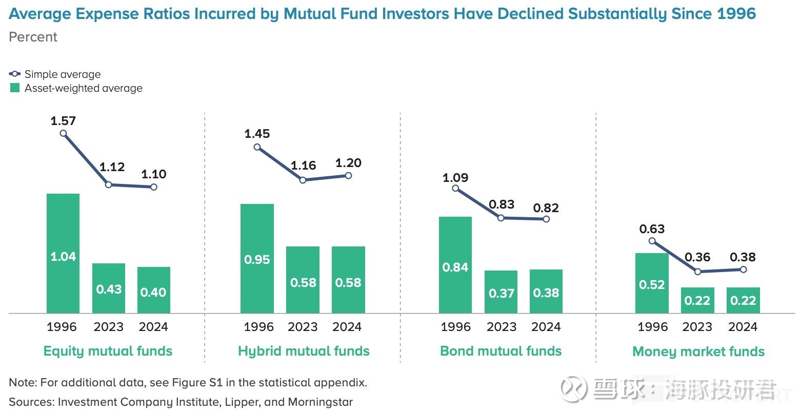 龙头们开打价格战,自然会带动整个行业的降费趋势得以加速。2010年末,共同基金的平均总费率不足1%,相比20年前的价格直接腰斩。