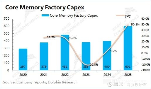 在 AI 存储需求的带动下,三大存储厂商的合计资本开支在 2025 年有望实现 50% 的提升,达到 600 亿美元左右。