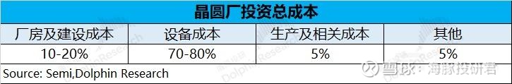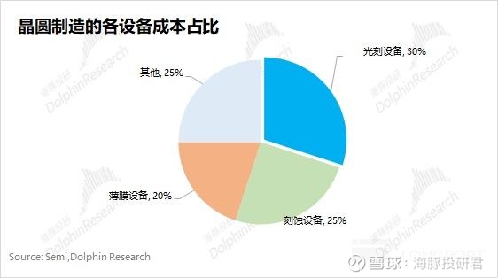 根据 SEMI 的数据,如果要投资建造一座晶圆制造厂,半导体设备是最大的成本项,大致将占到总成本的 70-80%。作为半导体制造的核心设备,光刻机在设备支出中占 30%,刻蚀设备占比约 25%,薄膜设备占比约 20% 左右。换算之下,这三类设备在总成本中就超过了 50%。