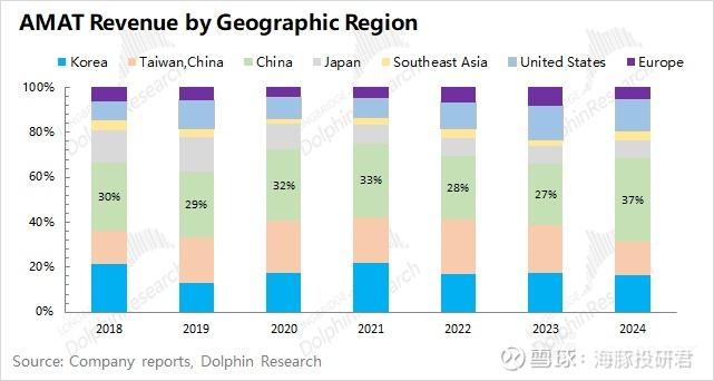 从应用材料的地区收入变化看,遵循了半导体制造业的产业转移的节奏,依次是 “日本 - 韩国及中国台湾 - 中国大陆” 的过程。而这也反映了公司的产品力,在各个阶段,分别都得到了不同地区客户的青睐。