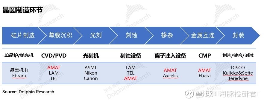光刻环节类似于给硅片 “画设计图”,而在这方面主要是由阿斯麦 ASML 等光刻设备厂商垄断,应用材料 AMAT 并未涉及该领域。