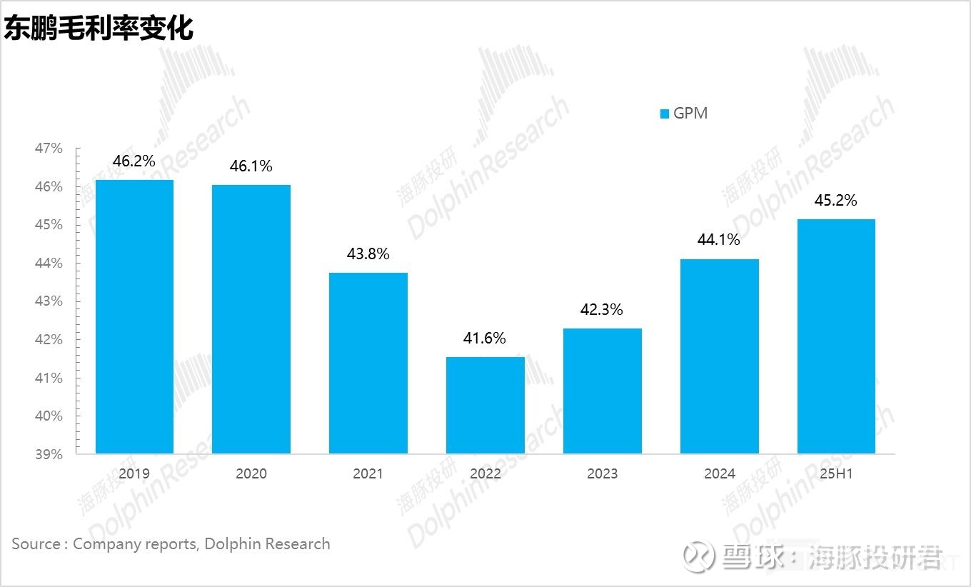虽然比不上农夫山泉这种 60% 的顶尖水准,但考虑到东鹏走的是性价比路线,定价较低,能达到这个水平也属于非常优秀了。