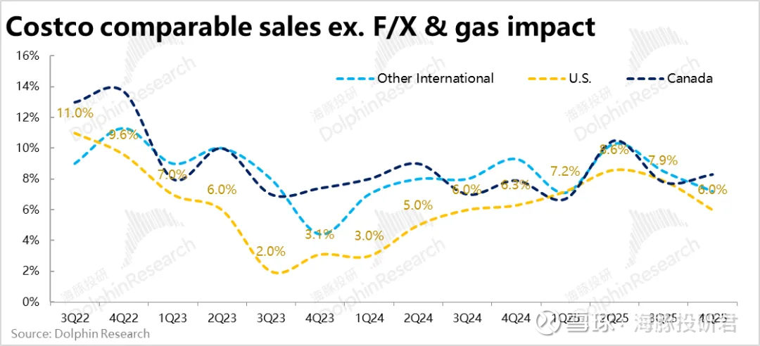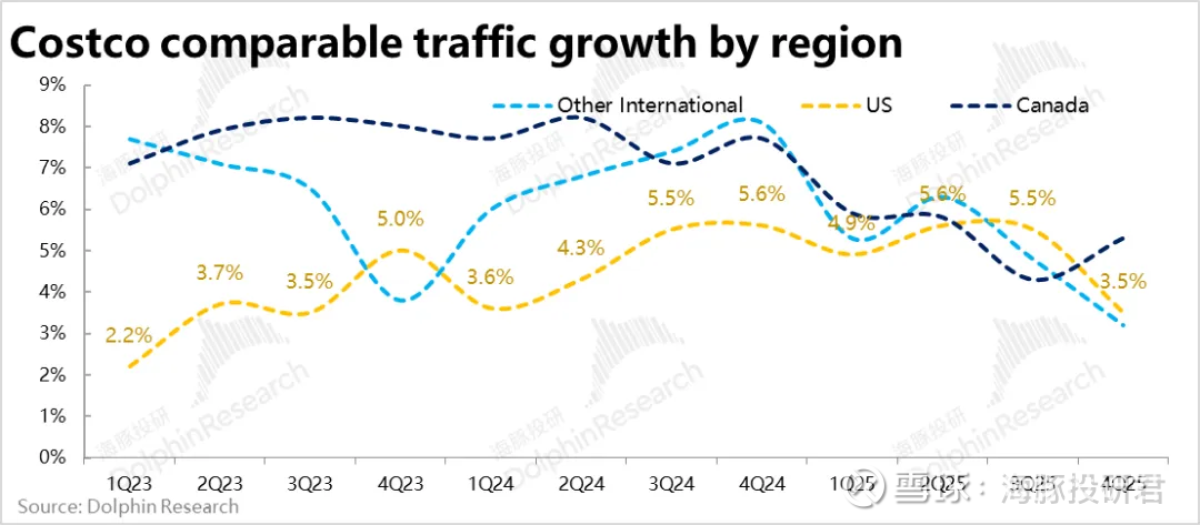 类似的,加拿大地区则因本就客流量增速依然不错,同店销售增速也并未明显下滑。