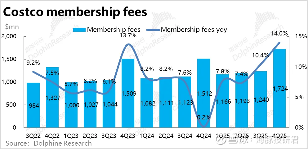 绝对体量不高但贡献可观利润的会员费收入本季约$17亿,同比大幅增长14%,明显提速,也跑赢预期。