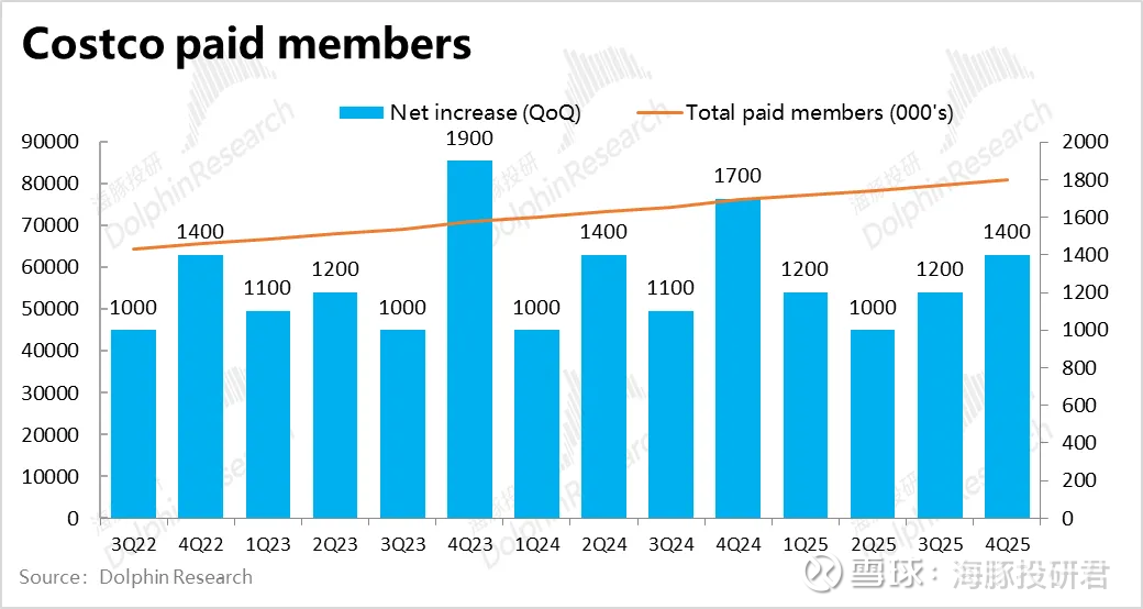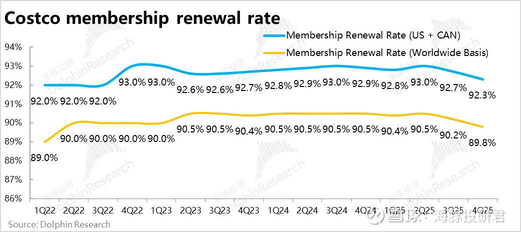 但海豚猜测,会费的提升、对会员身份检查的严格、和通胀压力下客流量增长的放缓,这些因素也有可能是续费率下滑的诱因。