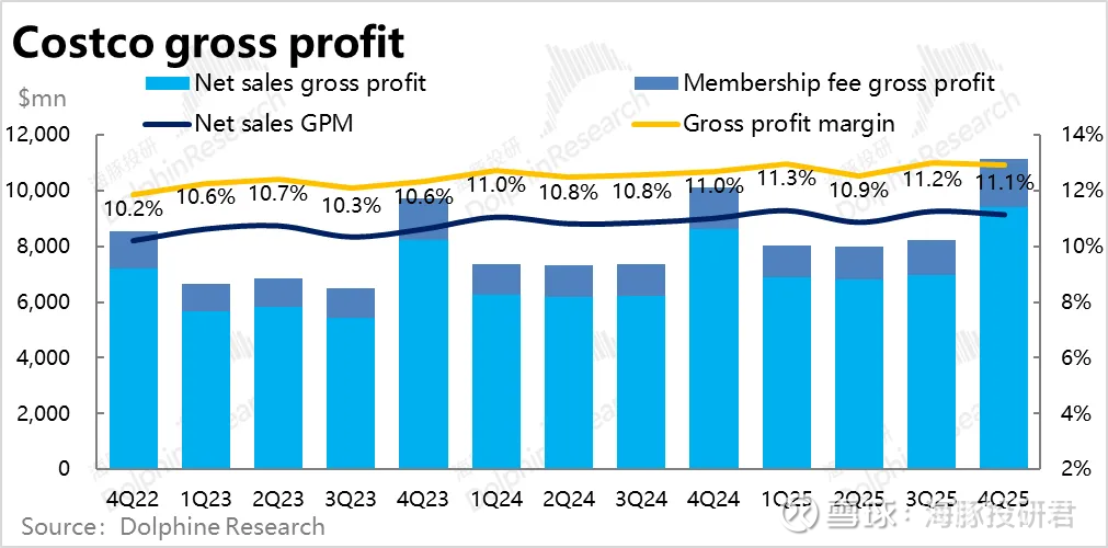 具体来看,本季度商品销售毛利率为11.13%同比提升了13bps,使得商品毛利润额$94亿,同比增长9.3%,跑赢收入增速且略好于市场预期。