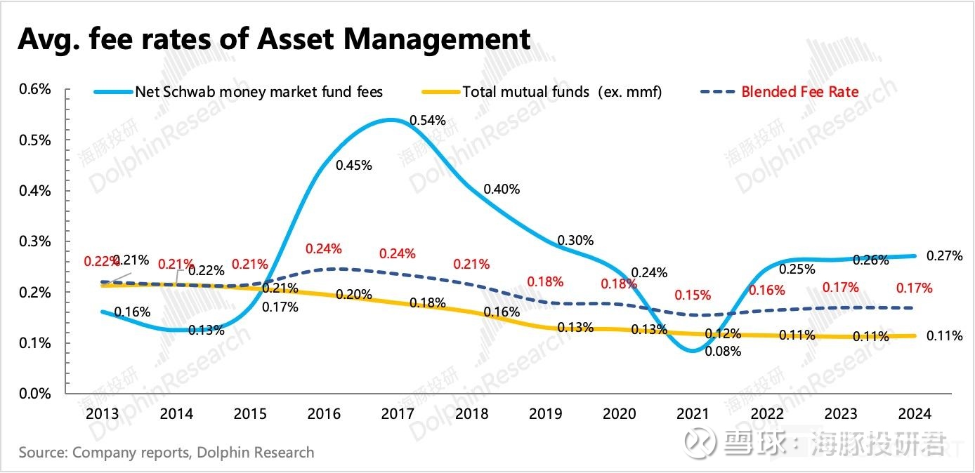 彼时,市场中的大部分资产收益率也水涨船高,货基年化收益率甚至来到了 3%~4% 的水平。这使得短期内有大量的客户将闲钱从嘉信银行账户转出,投入货基或其他高收益产品。