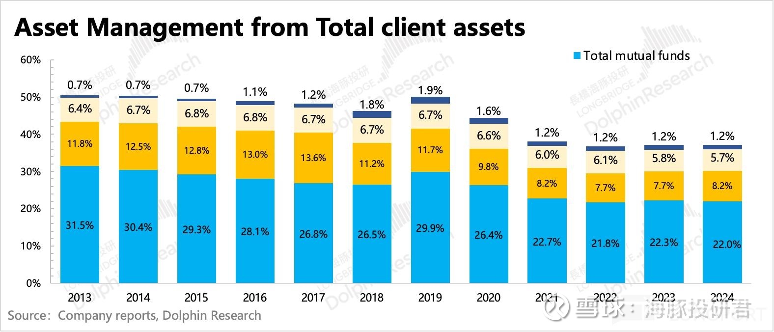换句话说,尽管利息周期会带来短期扰动,但长期视角下,净息差增长的核心驱动还是客户总资产 AUM。利息业务如此,那就更不用说本身就与 AUM 直接关联的交易收入和财富管理收入了。