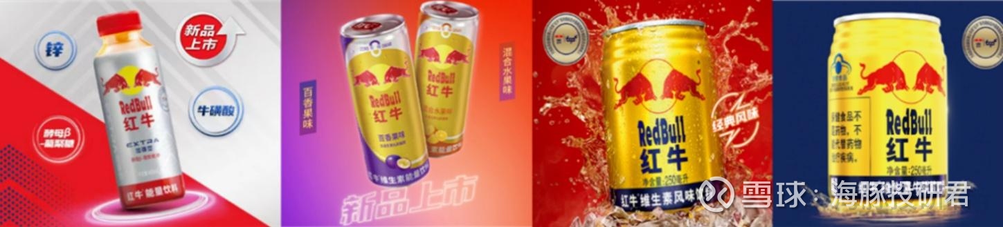 另一方面,为了抢夺华彬红牛在中国的市场份额,天丝集团在 2019 年亲自出马,先后在国内推出了红牛安耐吉(后改名为红牛牛磺酸饮料)和红牛维生素风味饮料两款产品,目前天丝系红牛(牛磺酸 + 风味饮料)2024 年在国内销售额大致在 50-60 亿元之间(各占一半),处于成长期。