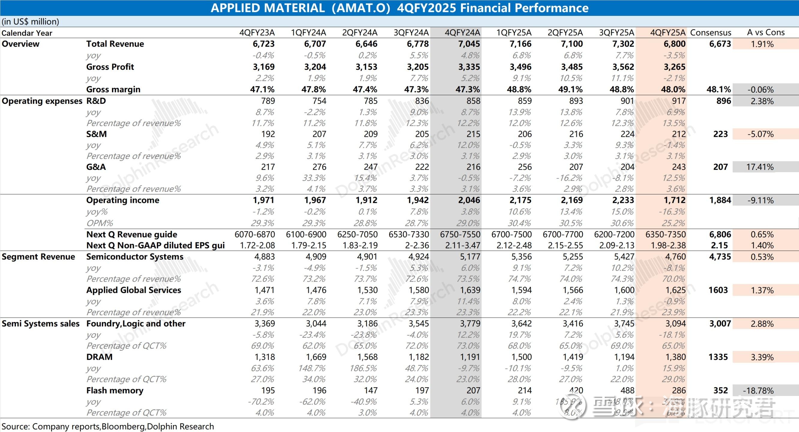 以下是海豚君关于应用材料 AMAT 财报及相关数据图表: