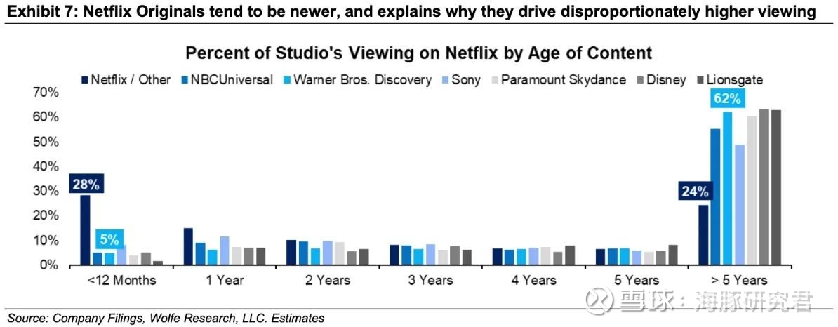 这无疑会对内容制作端的推陈出新,给到更多的压力。但通过采购外部 IP 授权,并不难解决核心问题。从 Netflix 目前的内容分布来看,外部 IP 授权的内容多为 5 年以上发布年限的老内容,各家自制的新鲜内容不会轻易拿出来对外授权。