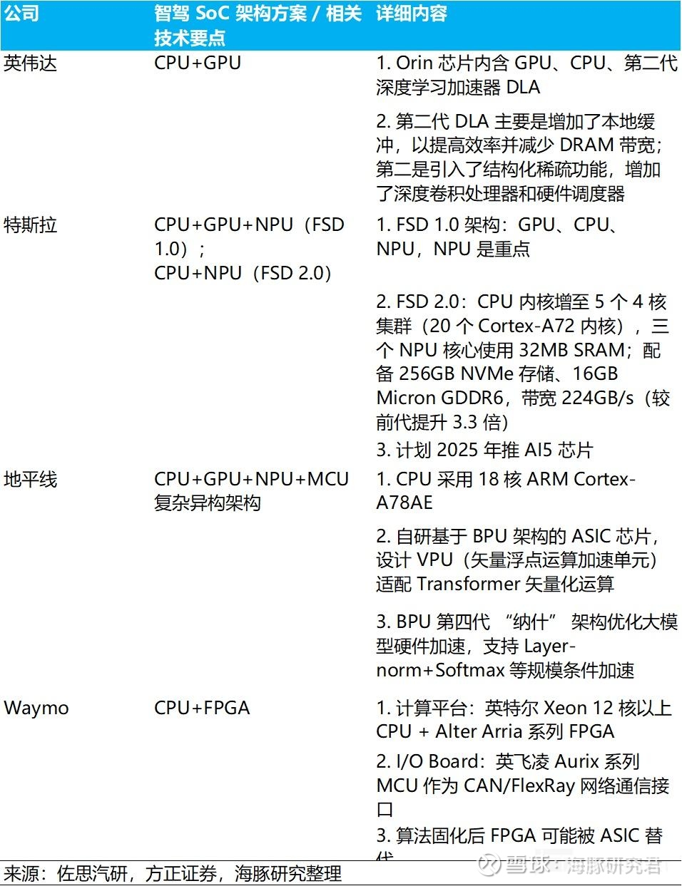 ① 垂直一体化玩家:特斯拉和华为。特斯拉采用自研自用的垂直整合模式,很早就自研芯片,华为也为 “智选车”+“HI 模式” 下的车企提供软硬一体化的智驾方案。