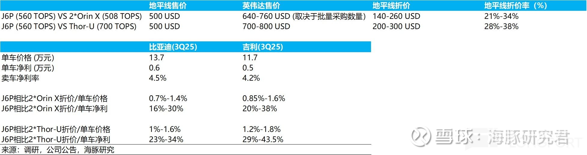 这有助于比亚迪和吉利这种规模大、低毛利的车企,采用地平线 J6P 芯片能能加速城市 NOA 在平价车型上的渗透。