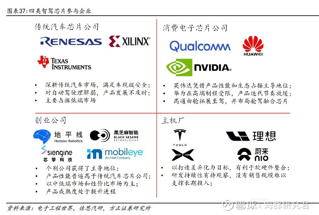 ③ 创业型智驾公司:如地平线,黑芝麻智能等。智驾挑战者,专注于智驾赛道,虽然目前出货也集中在中低算力,正努力向高阶智驾芯片突破,挑战英伟达。