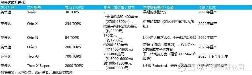 b. 定价太高,高阶智驾无法下沉:英伟达的定价基于其通用性能峰值,但在中国低个位数乘用车市场,芯片售价太高,靠英伟达无法实现城区 NOA 在中低端智驾车型的渗透率。