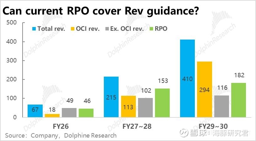 b. 可以看到,对 FY26~28 三年,预期的 OCI 收入规模完全可以由现有 RPO 覆盖,确定性相对高。
