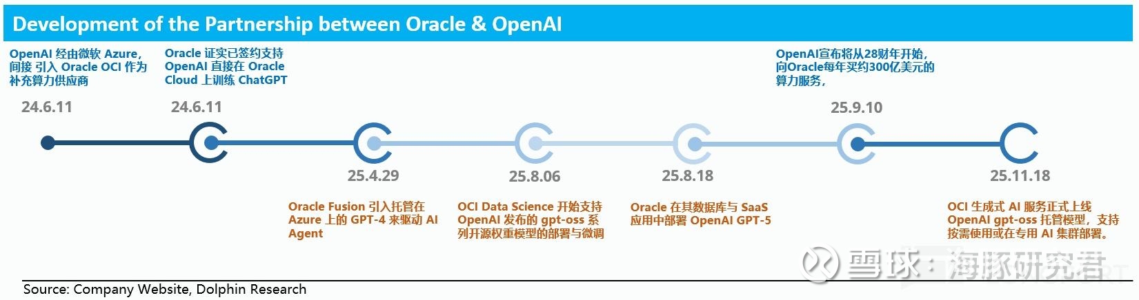 此前海豚君覆盖了 AI 时代新云中的一个小龙头-CoreWeave 作为研究美国 IaaS 行业的引子,而此次我们将目光投向了一个更加举足轻重的新云—$甲骨文(ORCL)$ (Oracle),当前 OpenAI 最主要的合作伙伴之一。