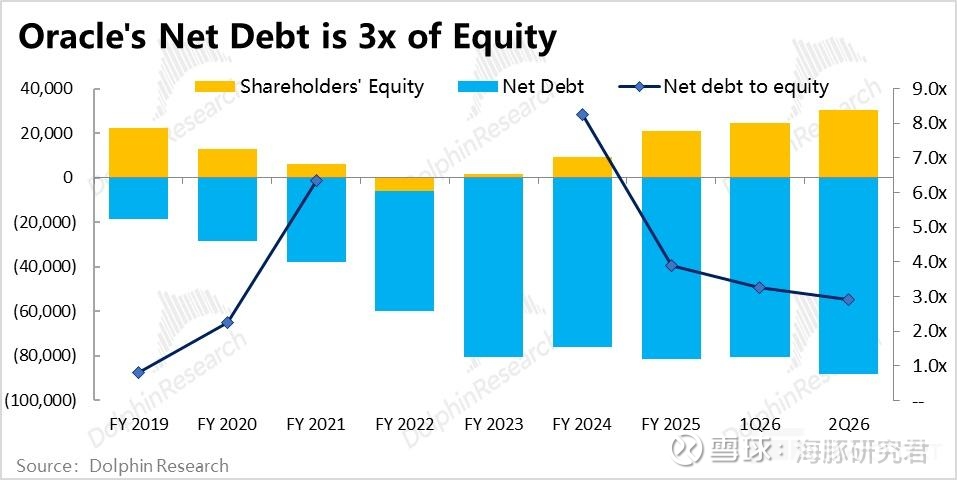 也就是说,公司的现金流缺口和举债真正的压力测试还并没到来,但公司当前的 BS 表结构就已经不算健康。若果真出现黑天鹅危机,Oracle 是真有资不抵债,股东权益归零的风险。