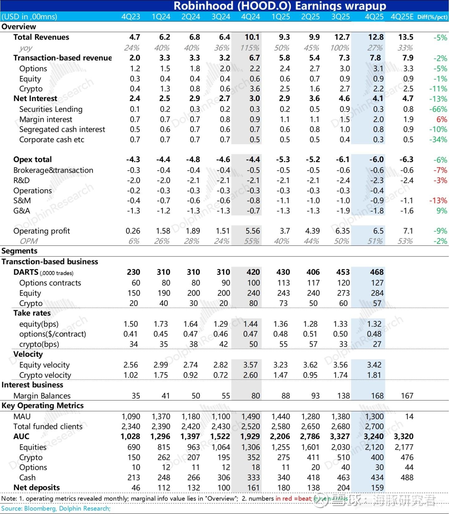 2026 年 2 月 10 日长桥美股盘后,散户王如期发布 25 年四季度业绩,但这个成绩单把本来要回血的罗宾汉又来一个 “当头一棒”。具体看下: