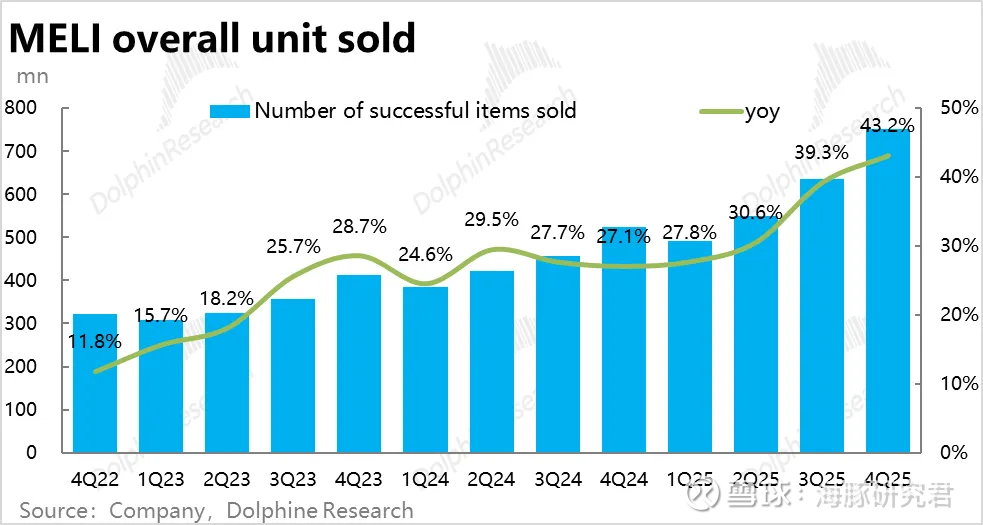2、物流提效,电商增长势头强劲:基石的电商业务,本季GMV同比高增近37%,较上季的28%显著提速。虽然增速走高同样主要由汇率顺风带动,但不变汇率下同样加速了2pct。