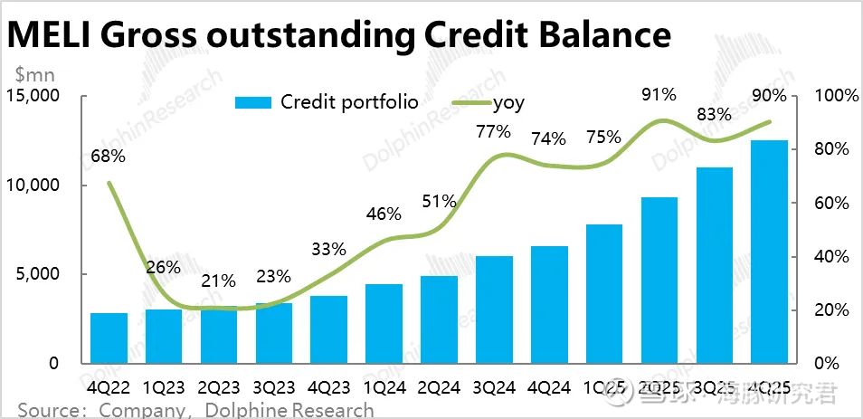 另一个支柱的信贷业务上,在依然强劲的信用卡业务带动下,总贷款余额依然维持着约90%的高速增长。