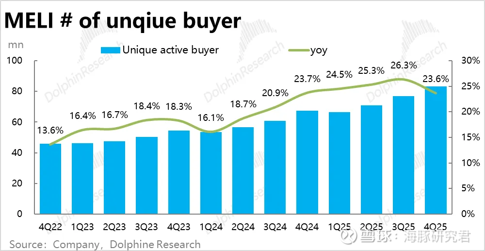 Meli金融板块的第一指标,金融月度活跃数量本季达7790万人,环比净增570万,是统计以来的单季净增最高值。金融板块客群拓展同样不错。