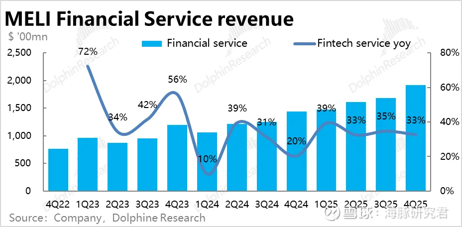 3、一方面,海豚君倾向于认为公司作为拉美地区业务布局最全面的互联网龙头,长期机会是有的。但目前在全球资本市场在AI冲击一切的叙事下,保守倾向更高,中短期内估值仍偏高的Meli则也难免承压。