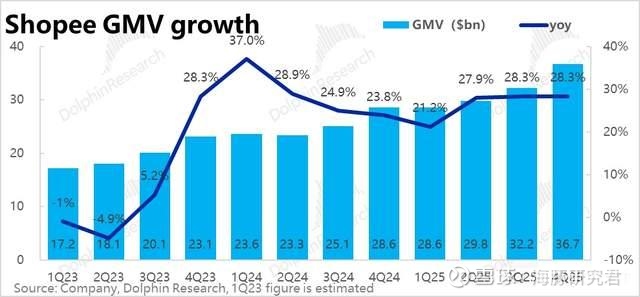 最重要的Shopee 电商板块,本季度在增长上表现相当强劲。不同于市场预期的增长会随着基数走高而放缓,实际 GMV 和单量增速再加速增长。