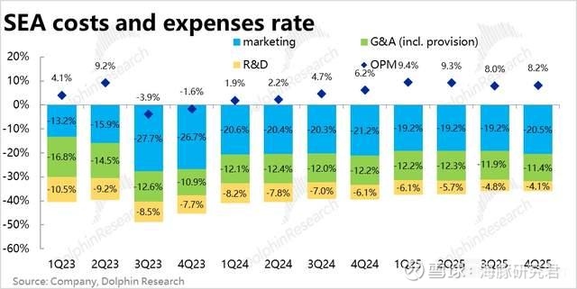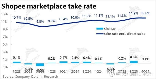 根据公司的公告,Shopee 在 2025 年再东南亚的不同市场大约提升了变现率 100 ~ 300bps,而在 2026 年至今,Shopee 就又已经在印尼、越南、马来、新加坡等多地宣布再提升 100~200bps 的变现率。