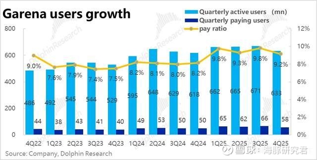 4、Garena 狂欢后的冷清:自上个季度与火影忍者和鱿鱼游戏两个热门 IP 联动的火热后,本季Garena 板块如期在玩家热情被部分透支后,增长回落到常态。
