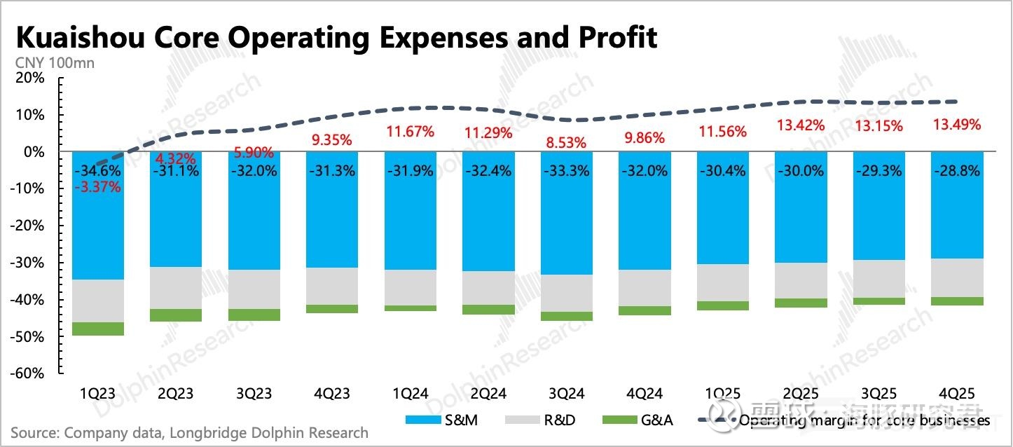 1. 经营提效继续:尽管 AI 投入在逐步确认(设备折旧成本同比增长 10%、研发费用同比增长 34%),但在基本运营类的费用上,公司做了一些控制,比如雇员费用整体增长 4%、推广营销费用同比持平。因此核心经营利润率 13.5%,同比提高 3.5pct,环比也略微提升了 0.4pct。