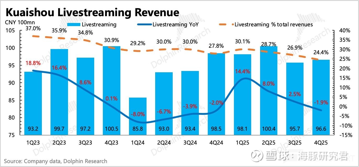 5. 直播有预期之内的压力:Q4 直播付费下滑 2%,相对疲软,主要受行业萎缩趋势,以及自身对健康生态的调控。