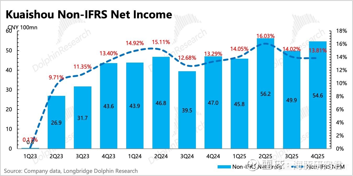 4. 广告小超预期:Q4 营销广告收入增速 15%,相比三季度继续微幅回暖,小幅超市场预期。市场或担心消费大环境、同行竞争以及投流税影响,对广告增长的预期并不算高。不过关于投流税影响是否会在 2026 年进一步扩大,建议关注电话会管理层交流。