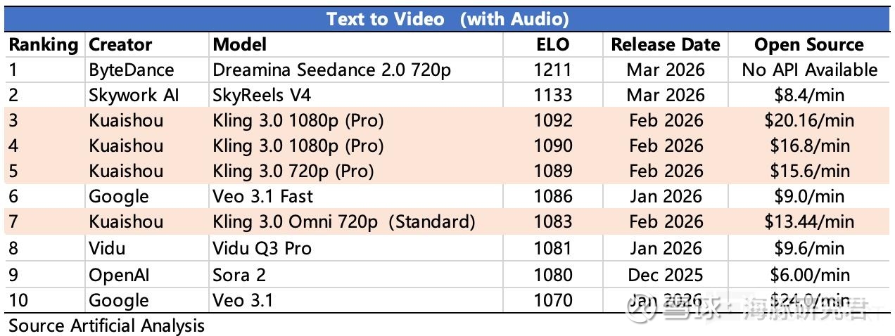 最可能的原因是管理层对可灵潜在竞争影响的考量,尤其是 AI 变动如此大的情况下,比如最直接的竞对 Seedance,借助抖音&豆包,尤其在 C 端用户领域的发展势头凶猛。相比通用文本 LLM,视频生成模型技术门槛要低一些且技术突破目前存在上限,而非像文本 LLM 一样仍有更多技术突破的想象力,因此绝对的技术壁垒并非那么高。