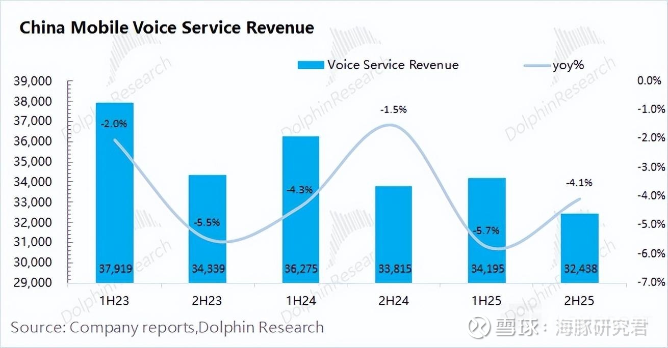 1)语音通话业务:公司 2025 年下半年实现收入 324.4 亿元,同比下降 4%。公司的语音通话业务处于稳定下滑的态势,主要是视频/语音等方式逐步替代了原来的传统通话。