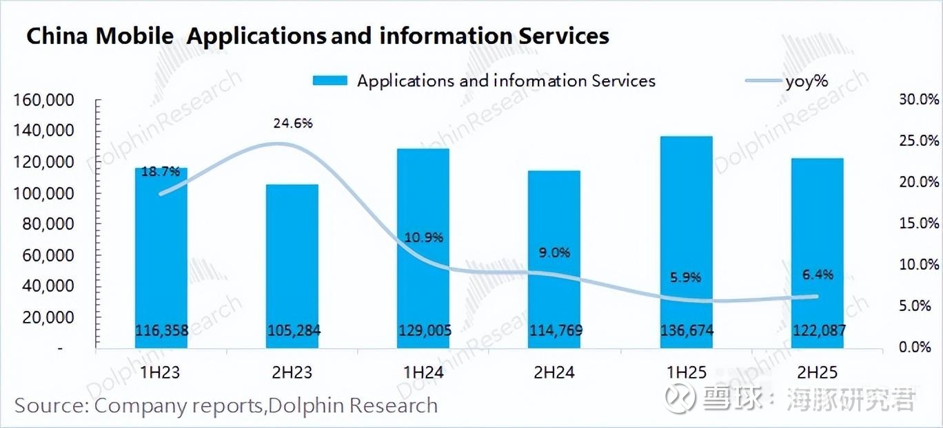 3)应用及信息服务业务:公司 2025 年下半年实现收入 1221 亿元,同比增长 6%。这一业务板块中主要包含了个人数字内容与应用(娱乐与生活)、智慧家庭业务(数字家庭中心)、企业数字化服务(政企信息服务)等方面。