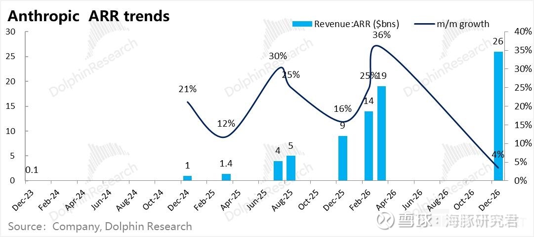 而站在当下,公司市值 400 亿美金,后续往 600 亿美金冲击,依然是能够直接量化模型智能化程度和受欢迎成都的 ARR 增长斜率重于泰山。