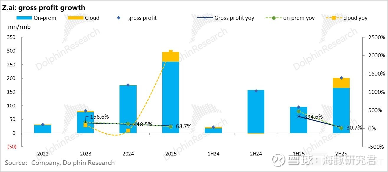 公司下半年毛利仅仅 2 亿元,同比增长只有 30%;其中本地部署业务在收入增长 57% 的情况下,毛利仅增长了 5%。